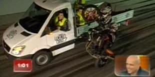 Mas bro mbak sist sekalian, wes A’A cuman bisa ndomblong lan doweh melihat aksi ekstrem kedua Stunt Rider ini. Menunggang Kuda besi BMW F800R dan dibantu kru pendukung yang ada pada truk, keduanya melakukan aksi mengganti ban depan sambil wheelie.