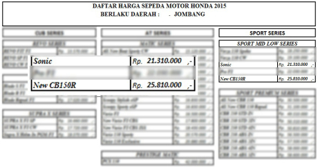cekidot tabel harga OTR Sonic 150R dan CB150R dibawah ini…