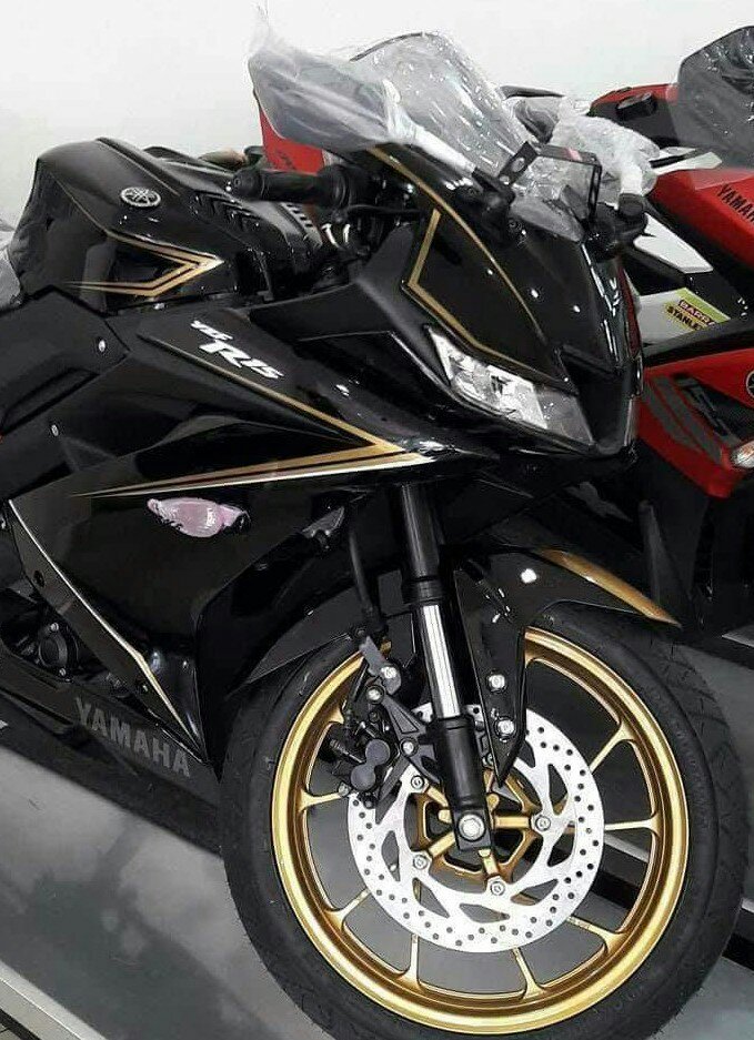 Lihat saja detil-detil levery New R15 VVA terlampir kang… tidak neko-neko, eye-catching, mengalir dan enak banget saat dipandang mata. Berwarna dasar hitam legam, Sport Fairing 155cc berfitur VVA Yamaha ini memancarkan aura gagah dengan grafis emasnya yang minimalis kang…. Lihat saja pada area depan, spatbor, side fairing dan tangki sang kuda besi yang diberi sentuhan minimalis… Kemudian dipadukan dengan velg yang dilabur warna emas, siapa mampu menolak pesona yang ditawarkan.