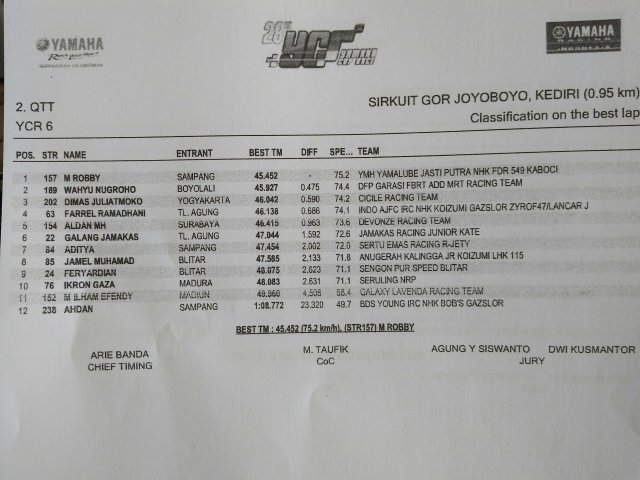 1 Response to Hasil Kualifikasi YCR 6 Moped 125cc Standart Tune Up Novice B Seri 2 Kediri