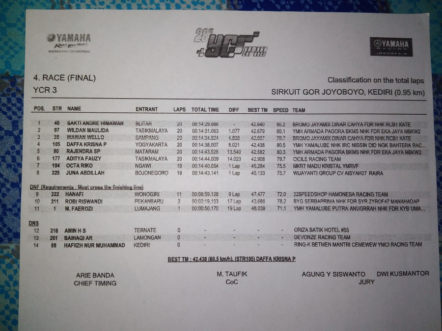 Hasil Lengkap Semua Kelas YCR Seri 2 Kediri. Seru!!!