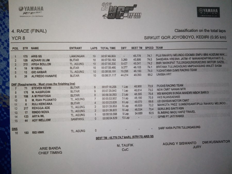 ← Hasil Lengkap Semua Kelas YCR Seri 2 Kediri. Seru!!!