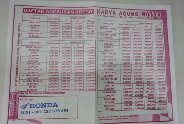 So, itulah harga terbaru motor Honda di Tulungagung dan semoga secuil info ini bermanfaat untuk kita semua