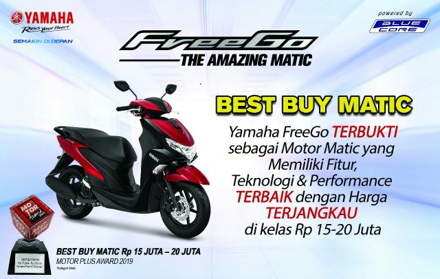 Yamaha FreeGo mendapat predikat Best Buy Matic, selain karena value for money (dengan harga beli dibawah 20 juta), motor skutik dengan mesin 125 cc ini dinilai berkualitas dengan memiliki fitur canggih yang biasanya hanya dimiliki skutik premium, teknologi yang mumpuni, serta performa (power dan torsi) yang unggul dikelasnya.