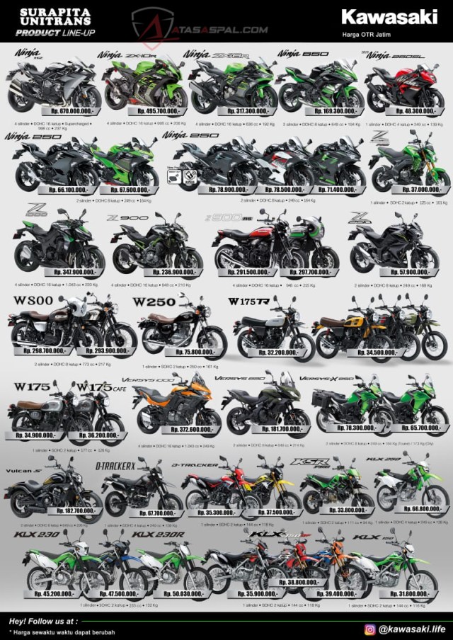 Yup cak… hanya dua varian saja yang masuk dalam brosur namun jangan kuatir dan berkecil hati saat tipe New Ninja 250 fi yang Panjrnengan idamkan tidak masuk karens dari Kota Surabaya A’A mendapatkan kiriman dari sist Mila, Surapita Unitrans yang semoga bisa mengobati rasa penasaran. Monggo brosurnya ada dibawah ini cak…