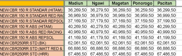 Lantas pertanyaannya adalah, berapakah harga CBR 150R saat ini untuk Madiun, Ngawi,Magetan, Ponorogo dan Pacitan? Jawabannya adalah….
