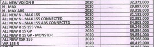 Mendapatkan info dari Sist Christine, PR Yamaha Jatim, seperti pada gambar dibawah ini yang update terbarunya pada 27 November 2020 lalu, harga New NMAX 155 VVA berkisar direntang harga 29 jutaan – 34 jutaan dari 5 varian yang ditawarkan. Lah detail harganya gimana kok cuman ancer-ancer saja? Seng tenang… A’A akan floor untuk panjenengan semua. Ok? Monggo disedot…