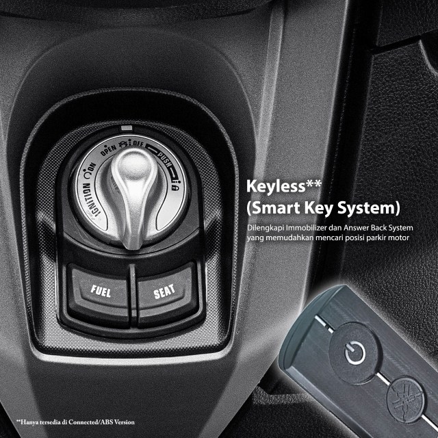 Tidak bisa disepelekan, sistem Keyless tentu menunjang keamanan untuk motor kesayangan. Motor tidak akan bisa dinyalakan bila remote tidak ada dalam jangkauan. Sistem keyless juga lebih susah untuk dibobol jika dibandingkan dengan sistem kunci kontak.