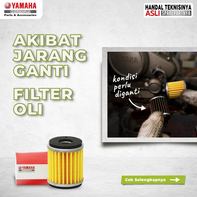 Mendukung perawatan sepeda motor untuk menjaga performa berkendara, maka Yamaha menyediakan suku cadang asli Yamaha, seperti filter oli asli Yamaha yang optimal untuk mesin motor Yamaha dengan daya tahan dan filtrasi kinerja yang tinggi serta telah teruji kualitasnya
