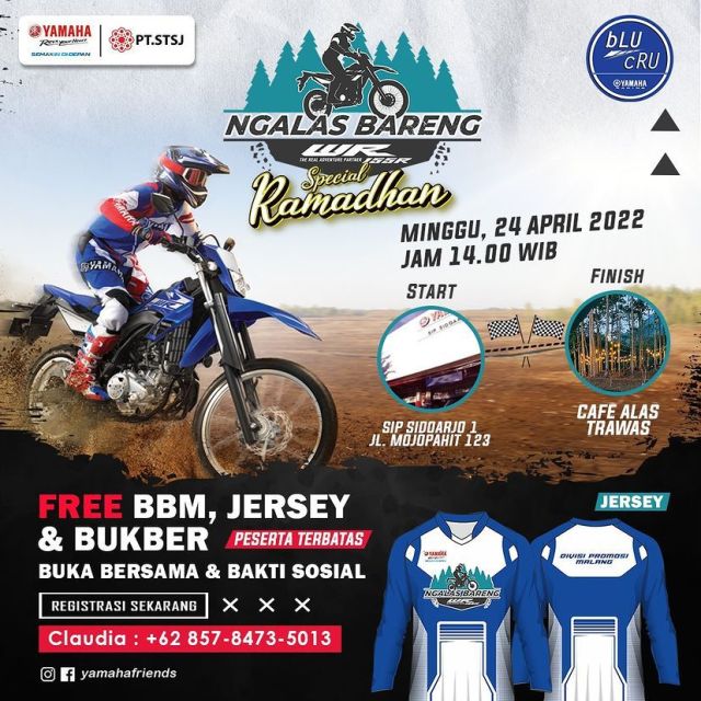 atasaspal.com – PT. Surya Timur Sakti Jatim (Yamaha STSJ) kembali mengajak seluruh konsumen WR 155 area Surabaya dan sekitarnya untuk turut berpartisipasi dalam acara Ngalas bareng WR 155 spesial Ramadhan. Kegiatan ini menjadi ajang silaturahmi dengan sesama konsumen WR di area Surabaya dan sekitarnya.