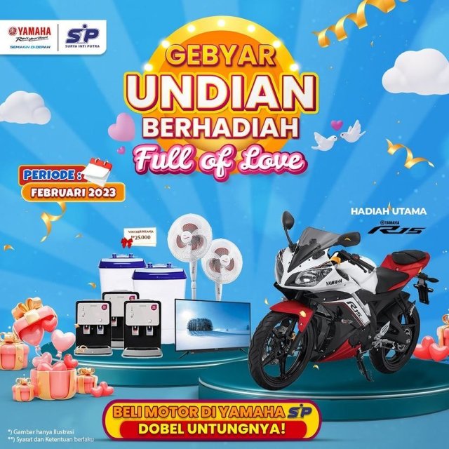 atasaspal.com – Dalam rangka memperingati hari kasih sayang atau valentine day yang jatuh pada 14 Februari 2023, PT. Surya Timur Sakti Jatim (Yamaha STSJ) selaku Main Dealer motor Yamaha area Jawa Timur, Kalselteng, Kaltim, dan Nusra memberikan program spesial bagi konsumen loyal Yamaha. Program bertajuk “Gebyar Undian Berhadiah Full of Love” ini merupakan bentuk apresiasi kepada konsumen yang telah memilih Yamaha.