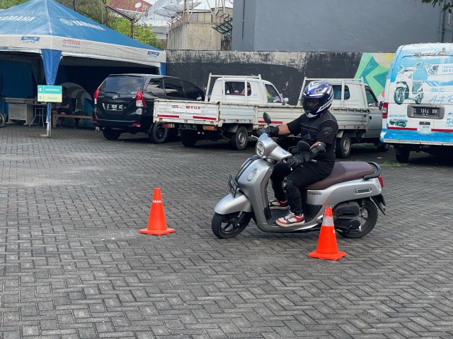 Kegiatan dilanjutkan dengan praktik berkendara dimana seluruh peserta diajak untuk mempraktekkan ilmu yang telah dipelajari kedalam tiga rintangan seperti braking (pengereman), chidori, dan u turn. Seluruh peserta semakin bersemangat untuk menerapkan pelatihan tersebut dengan menggunakan motor Yamaha Fazzio Hybrid-Connected.