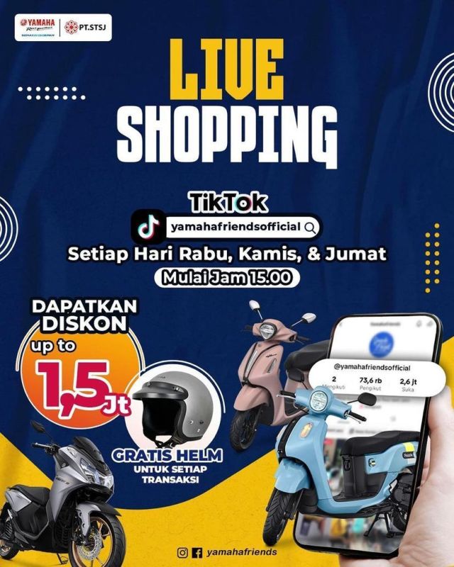 Informasi lebih lanjut terkait Live Shopping juga dapat dilihat melalui akun instagram resmi @Yamahafriends. Spesifikasi unit motor Yamaha dapat mengunjungi website resmi http://www.yamaha-stsj.com.