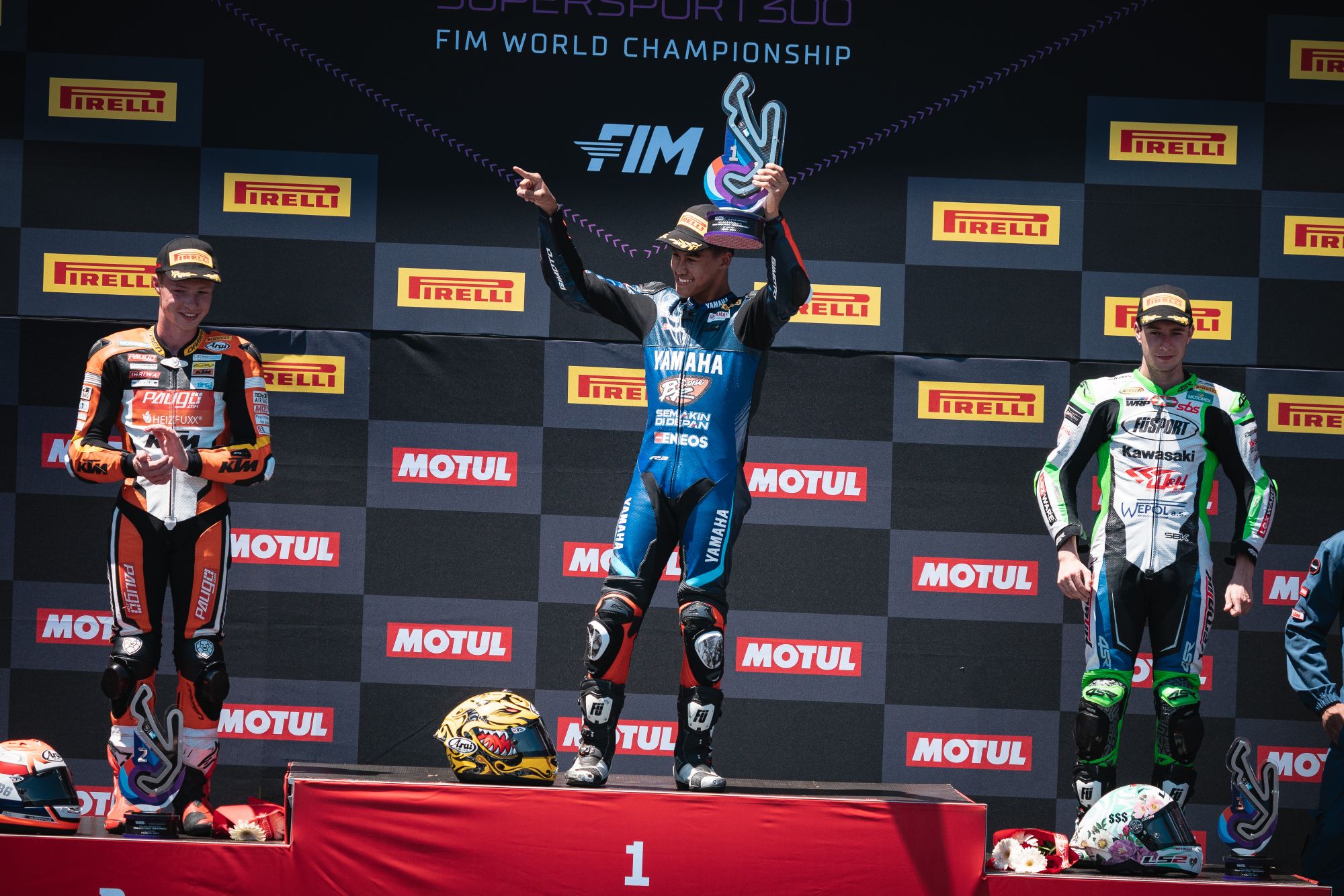 Aldi Satya Mahendra yang menunggangi pacuan YZF-R3 sebagai produk global yang diproduksi di Yamaha Indonesia Motor Manufacturing (YIMM) berada di posisi ke-2 dalam standing point WorldSSP300. Ini hanya berbeda 12 poin dari pemuncak klasemen sementara.