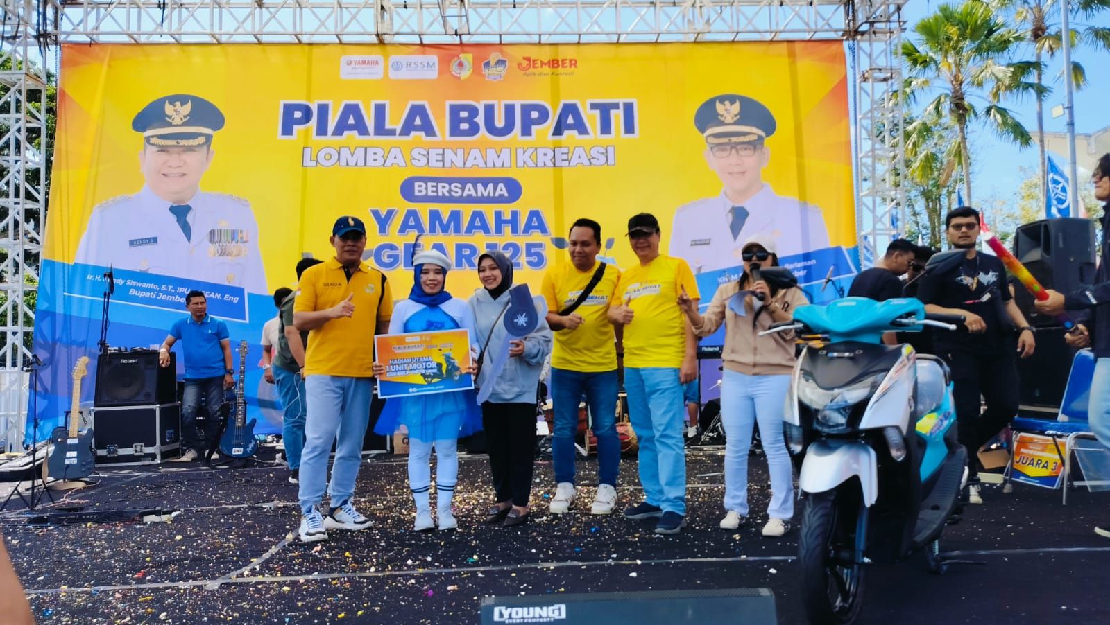 Rangkaian event Piala Bupati Lomba Senam Kreasi Gear 125 di Jember dimulai kompetisi senam kreasi yang diikuti lebih dari 500 peserta yang terdiri dari 35 tim. Selain itu, kompetisi baris berbaris juga diikuti oleh ratusan peserta yang berasal dari kalangan siswa/siswi SMA dan SMK di wilayah Jember. Terakhir acara ditutup dengan jalan sehat dengan hadiah utama unit motor Yamaha Gear 125.