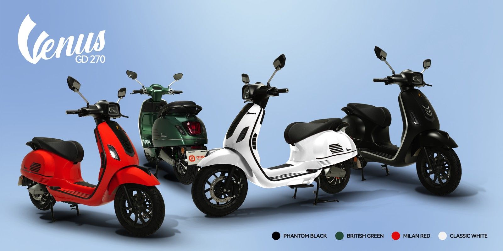 Desain retro-touring berpadu dengan warna solid yang elegan, menjadikan Venus pilihan sempurna untuk pecinta gaya klasik. Terinspirasi dari siluet legendaris Vespa, motor listrik ini dirancang untuk mereka yang ingin menikmati setiap perjalanan dengan nuansa timeless dan penuh kesan. Harga mulai 11 jutaan.