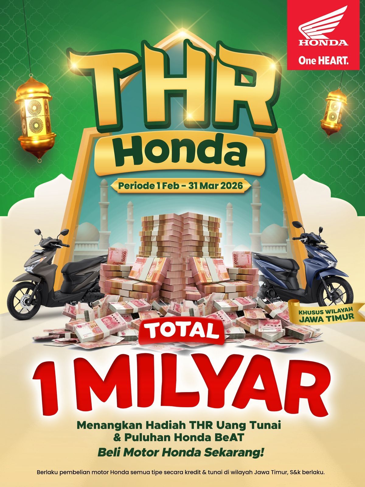 atasaspal.com – Gengz kabar gembira nih buat sampean warga Jawa Timur! Menyambut Ramadan dan Lebaran 2026, MPM Honda Jatim lagi bagi-bagi “THR” yang nggak main-main. Lewat program THR Honda 2026, mereka sudah nyiapin total hadiah sebesar Rp1 miliar buat kamu yang setia pakai motor Honda. Lumayan banget kan buat nambah amunisi mudik?